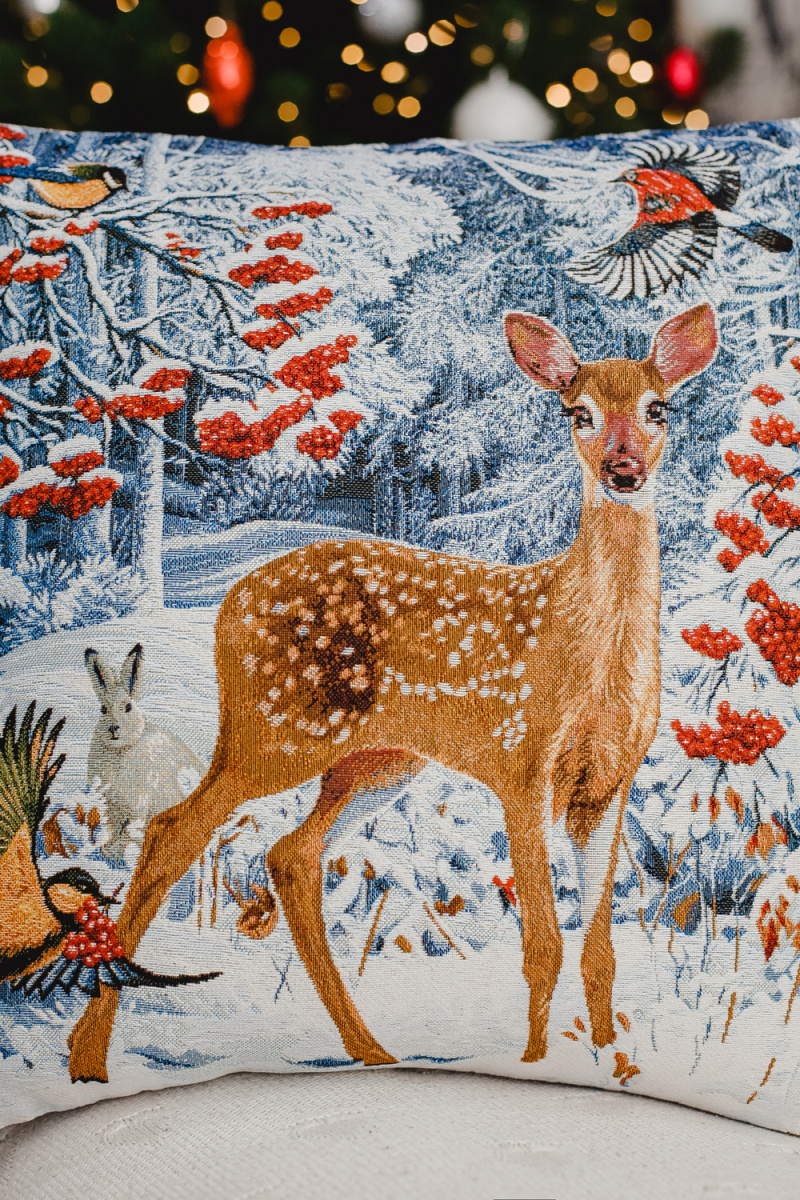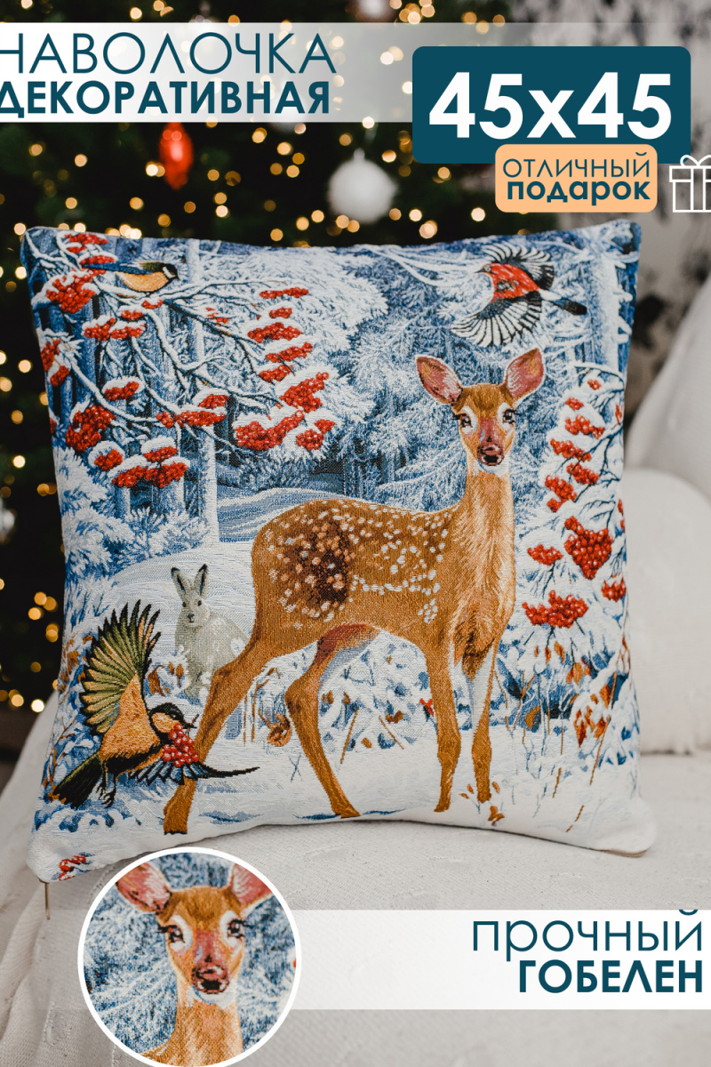 ВАЖНО размер может не много отличаться +- 3 см!!!!! Односторонняя наволочка декоративная размером 45х45 см(+-3см). У наволочки гобеленовой молния находиться в нижнем шве изделия. Уход - машинная стирка при 30 градусах на деликатном режиме с закрытой молнией. Не смешивать при стирке с другими тканями. Утюжить на среднем температурном режиме. При правильном уходе наволочка декоративная прослужит долгие годы в неизменном состоянии: не линяет и не дает усадку. Качественная и удобная в использовании, устойчивая к истиранию красок и деформациям при стирке, такой чехол на подушку будет долгие годы радовать красотой и эстетичностью! Обратная сторона наволочки на диван из однотонной гобеленовой ткани. Прекрасный рисунок на наволочке декоративной новогодней гармонично дополнит самый изысканный интерьер, привлекая внимание своей теплотой и оригинальностью. Мягкий материал необычайно приятен и прочен. Гобеленовое изделие так же подойдет в качестве ПОДАРКА вашим родным на новый год, друзьям и близким маме или бабушке)